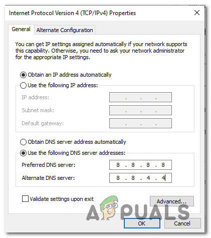 - Inconsistent DNS – Another potential cause that might cause this error is an inconsistent DNS assigned by your ISP. Several affected users facing the same problem have confirmed that the issue was fixed once they’ve migrated their DNS to the range provided by Google.