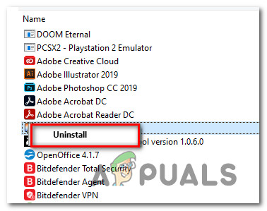 Uninstalling the problematic Firewall - Inside the uninstallation screen, follow the on-screen to complete the uninstallation, then reboot your computer and see if the problem is fixed once the next computer startup is complete.