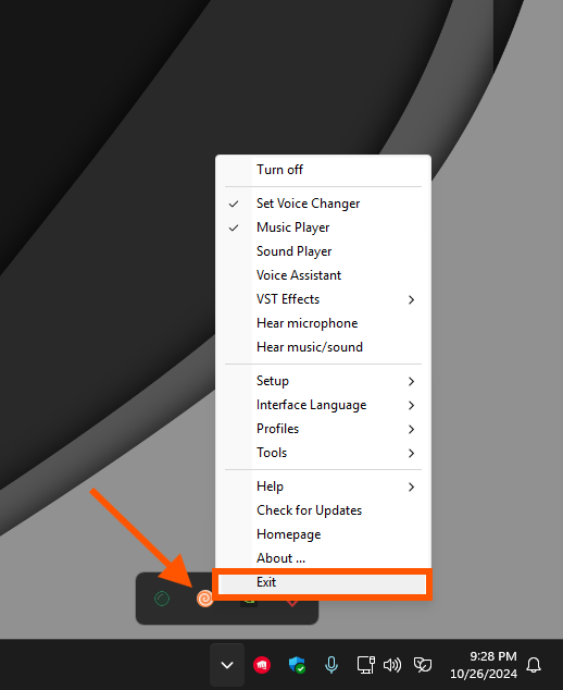 - Close “Clownfish Voice Changer” from the tray icon, then relaunch it to check if the problem is resolved.