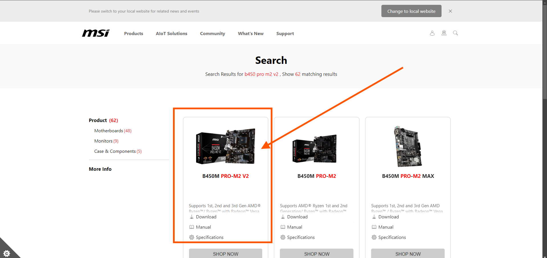 - Select your motherboard; this will redirect you to the Motherboard Support Page.