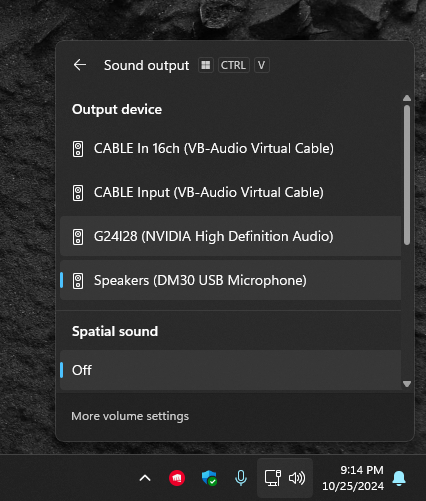 - After installation, your default output device might change to cable input. To fix this, click the speaker icon in the tray and select your default output device again; otherwise, you won’t hear any sound from your PC.