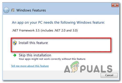 Installing the required net framework - Once the required framework is installed, restart your computer once again and see if the problem is now resolved.