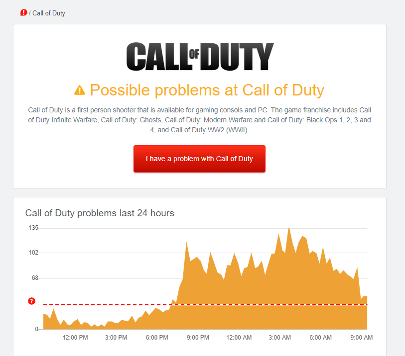 If you suspect this scenario might be applicable, you should start by checking the dedicated Activision status page where you can see if the game is currently dealing with server issues.