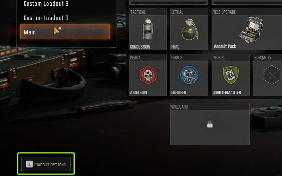 - When the loadout list appears, open the Loadout Options menu located at the bottom left.