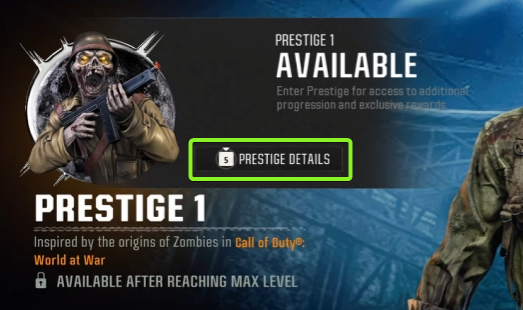 - Go to your current prestige level and hold the button indicated next to Prestige Details.