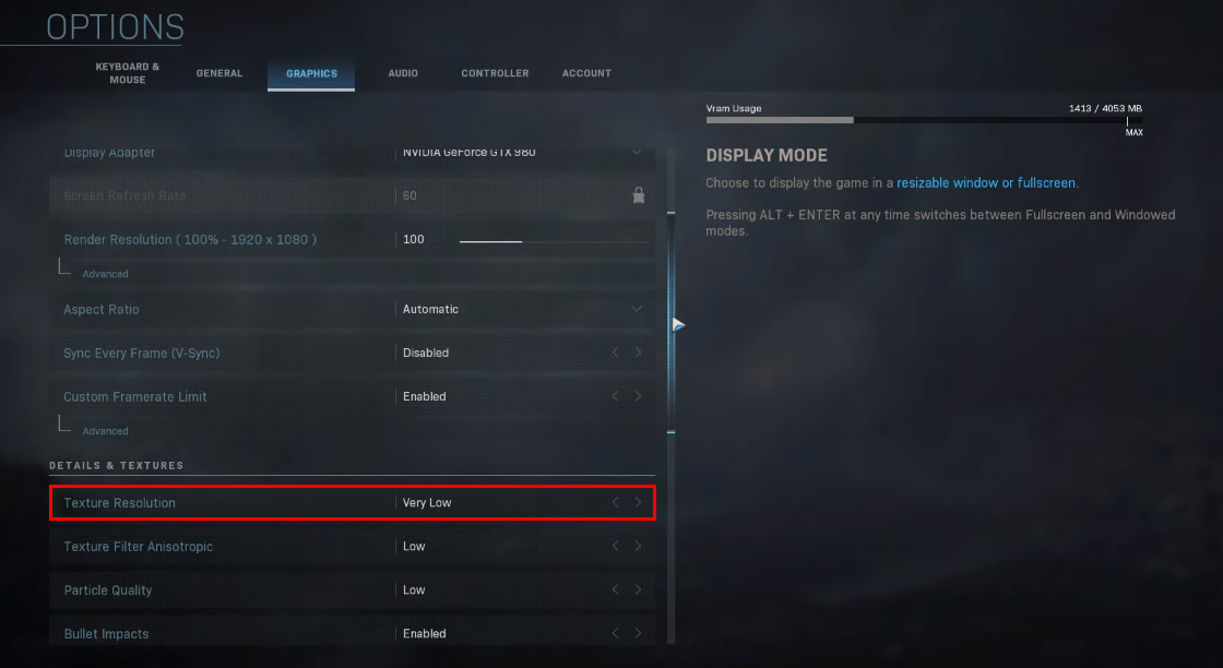 Here’s a quick guide on lowering VRAM (Video Random Access Memory) and the used textures from the settings menu of your game: