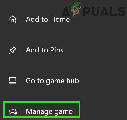- Open the Manage game and add-ons option from the context menu that just opened.