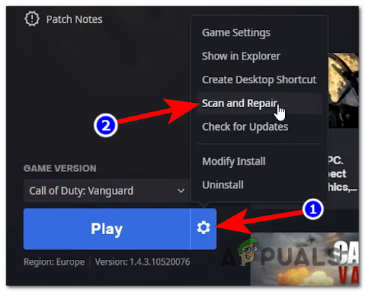 - Corrupted game installation – Oftentimes, this particular issue is rooted in some kind of corruption affecting the local installation of the game. In this case, you should be successful in fixing the issue by using the Battle.net launcher to perform a ‘Scan & Repair’ procedure on Call of Duty Modern Warfare or Call of Duty Warzone. If that doesn’t work, try reinstalling the game manually.