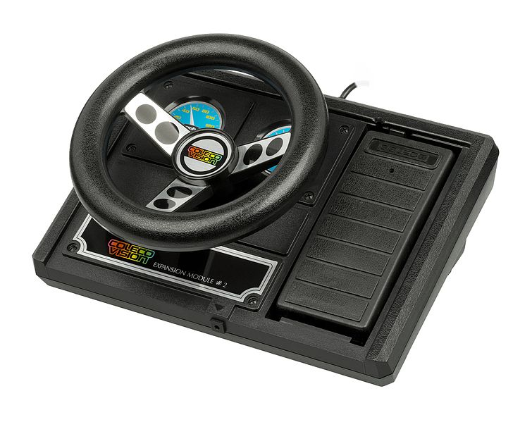 The Driving Controller was a steering wheel controller with a gas pedal, that was bundled with Turbo, a racing game. The gas pedal was simply an on/off switch. Even though it was designated as an Expansion Module, the Driving Controller plugged in the controller port and not the Expansion Module Port of the Vision. It was compatible with only a handful of other racing games and not that successful.