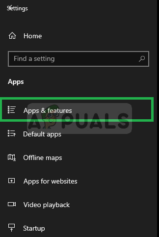 - Click on ‘Apps’ and select ‘Apps & Features’ from the left pane.