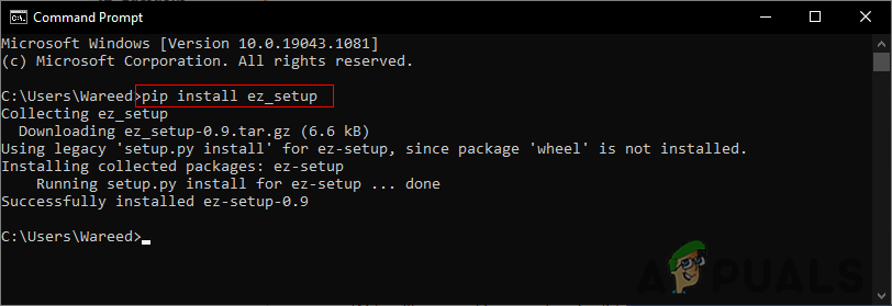 Installing ez_setup - Once the installation is successful, you will see a message with the version. You can now try running the package install command to check if it works.
