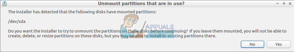 At some point during the installation, you might be given a warning about partitions that are in use. Pay close attention to the device file the installer names, since this might actually point to the install media or an attached USB memory stick. Likewise, many smaller netbook computers actually have an attached SDHC or microSDXC reader, which could contain a valid partition table as well. In most cases unmounting these partitions won’t be an issue, but you’re probably not going to want to install your operating system to an SD card sitting in a slot if you were trying to replace Windows 7.