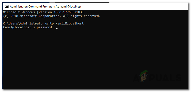 Connecting to the SFTP Server from Command Prompt - After doing that, you will be asked to enter the password of the user account. Provide the password that you created earlier during the User Account wizard.
