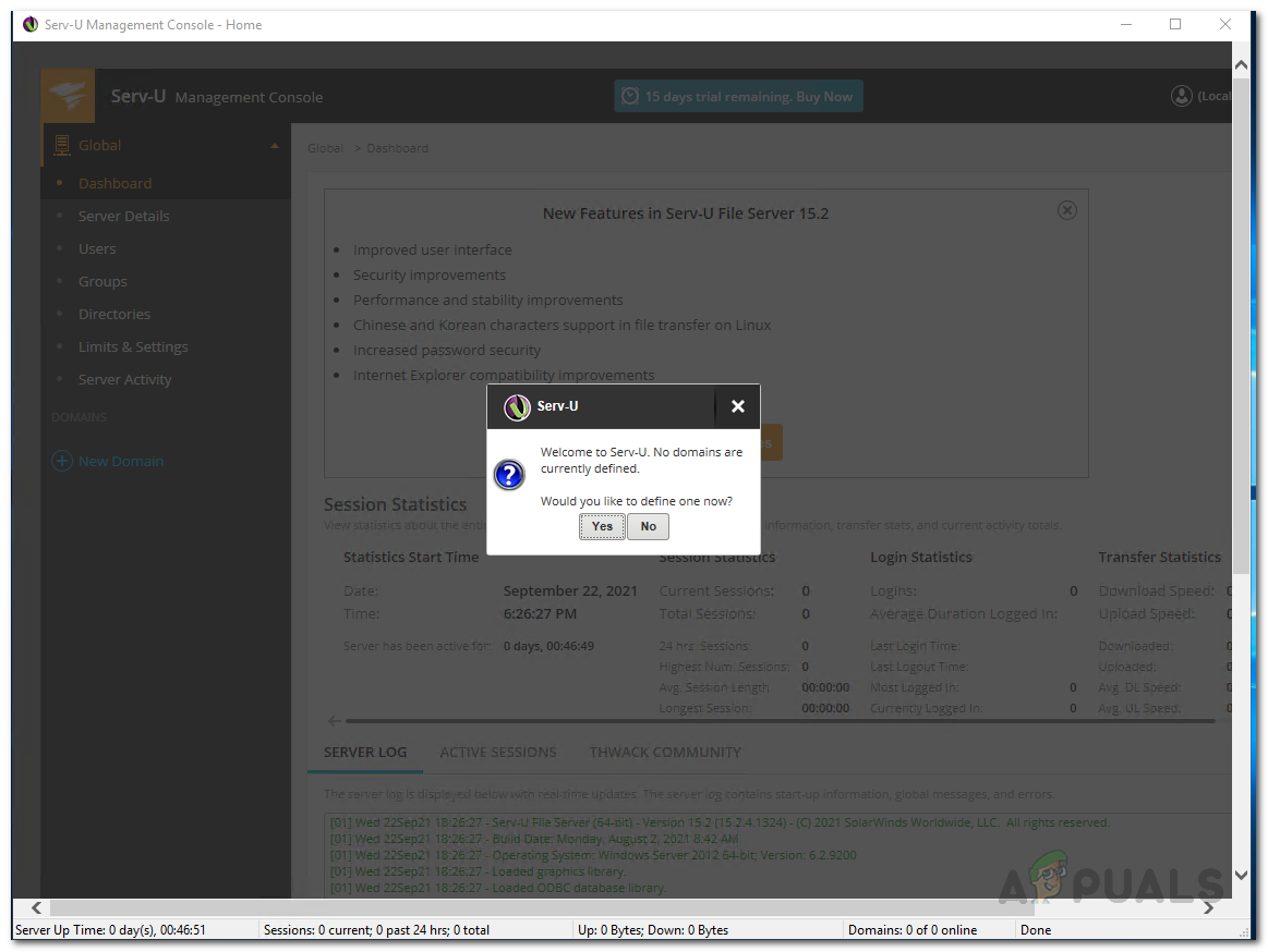 A domain is basically the core of the Serv-U server. For a layman, a Serv-U domain is essentially a number of listeners and user accounts that are basically allowed to connect to the SFTP server and access the files and folders. For further restriction and control, you can configure the domain created to restrict access based on IP address and even limit bandwidth usage so that the server performance remains optimal. With that said, creating a domain is really. Follow the instructions given down below: