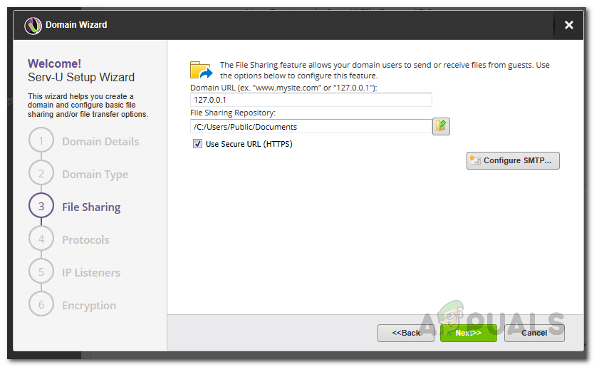 Choosing Domain Type - Now, if you choose the File Sharing option, you will be taken to the File Sharing tab. Here, provide the domain URL that is to be used and then follow it up by choosing the file sharing directory.