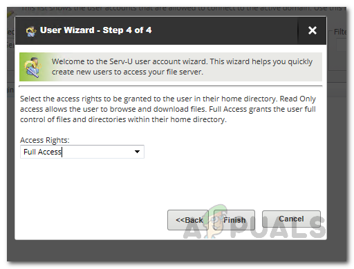 Providing the Home Directory of the User - Finally, on the last screen, you will be asked to choose the Access Rights of the user.