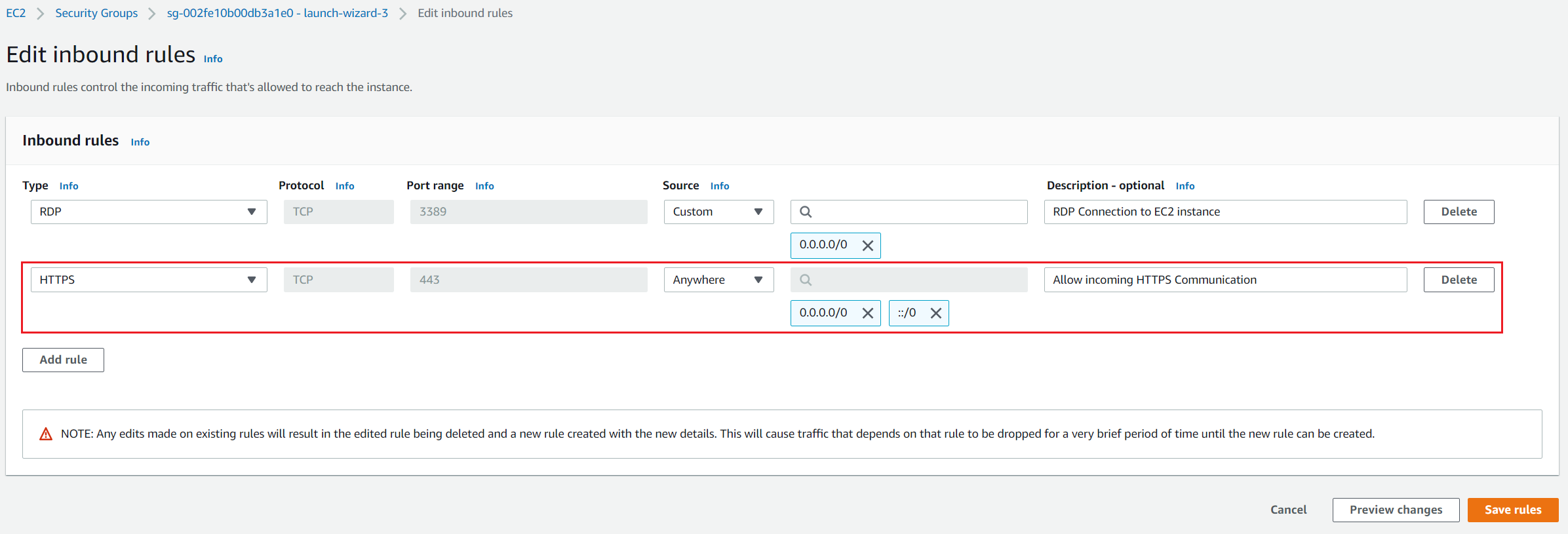 Part I: Configure inbound rules by enabling HTTPS
