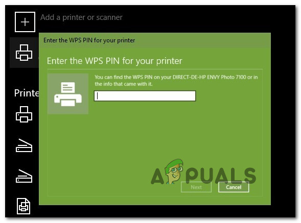 - You’ll then be prompted to insert the WPS PIN – you can typically find it by looking on the back or bottom of your printer.