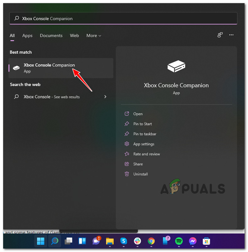- On your PC, access the Xbox Console companion app by pressing the Windows key and searching for ‘Xbox Console’.