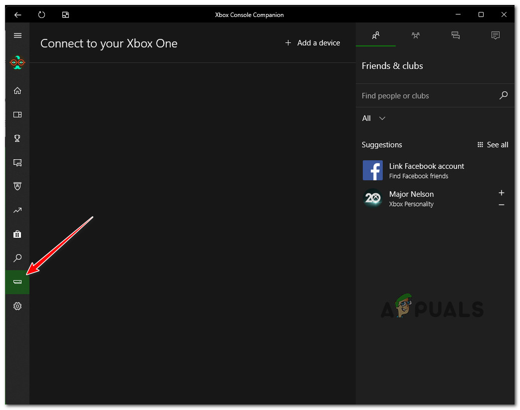- Once you’re inside the main menu of the Xbox Console Companion app, click on the Connection icon from the vertical menu on the left.