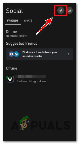 Accessing the Social menu of the Xbox app - Once you’re inside the Social tab of the Xbox app, tap on the Headset icon (top-right corner of the screen.