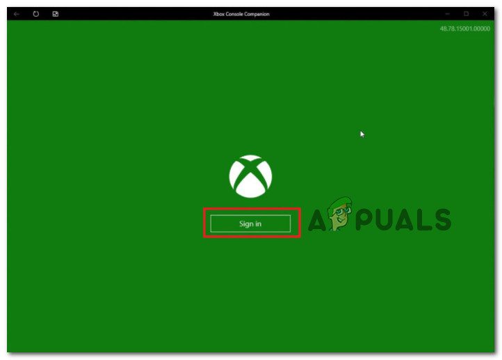 - Once you’re inside the first screen of Xbox Console Companion, click on Sign In and insert the credentials associated with the Microsoft account that you use on your console.