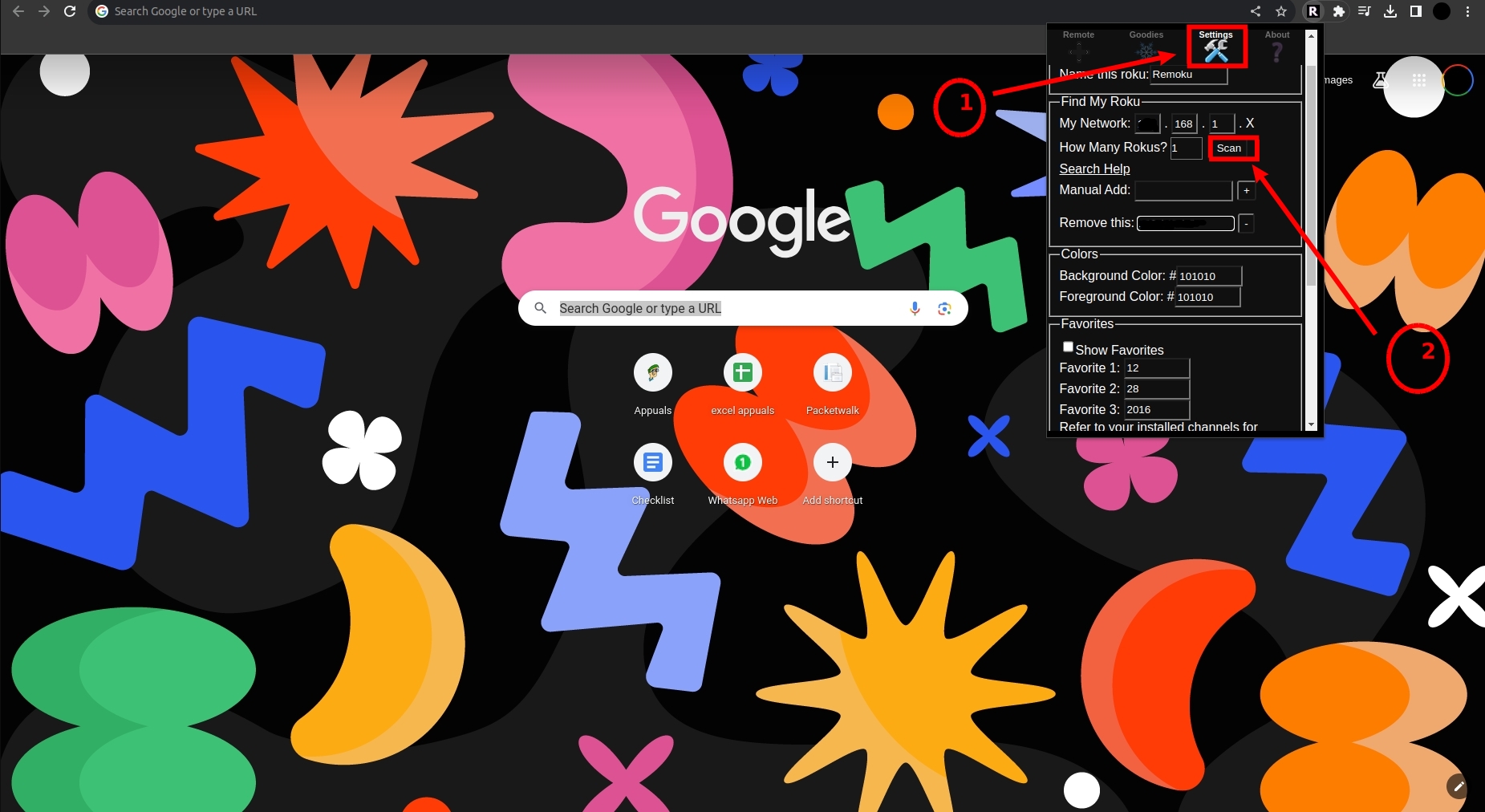 - Click on the Settings icon of the extension and scan for nearby Roku devices.