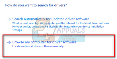 - After you click Update Driver, Windows will ask you if you want to add the driver manually or you want Windows to search for drivers automatically using the internet. Click on the second option (search for drivers manually).
