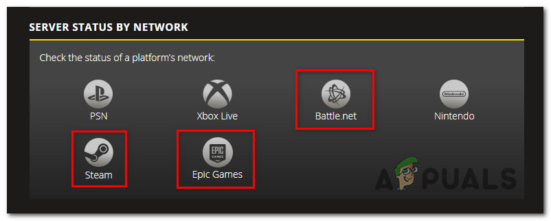 However, it’s also possible that the platform you’re using to play the game (Steam, Epic Games, or Battle.Net) or the console platform (Playstation Network or Xbox Live) is having issues. You can check if this is true by clicking on the platform icon (under Server Status by Network).