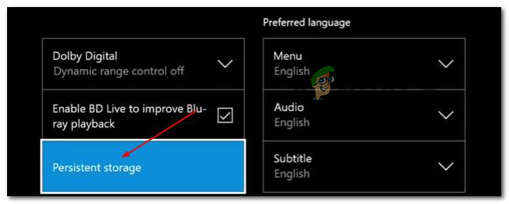 - Inside the Blu-Ray dedicated menu, go to Persistent Storage and use the Clear Persistent Storage button to clear your consoles cache.