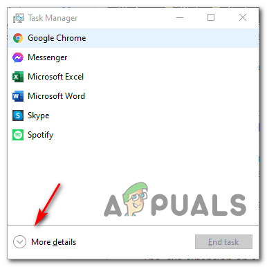 - Open Task Manager by pressing Ctrl + Shift + Enter. If the simple interface appears, click More details.