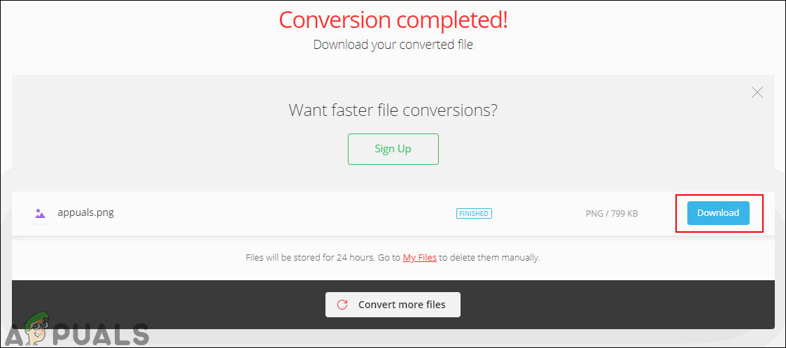 Converting the file - After the conversion is complete, click on the Download button to save the PNG file to your computer.