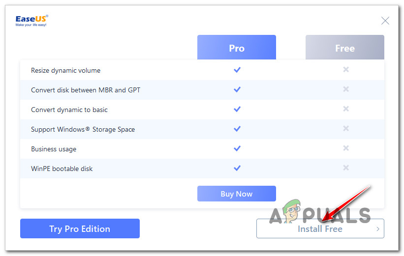 Downloading the Ease.US installer Note: When you’re prompted about the package you want to go for, make sure to download the free version. EASE.US allows you to convert a basic disk to dynamic with the free version, but you’ll need the PRO version to convert a dynamic disk back to basic.