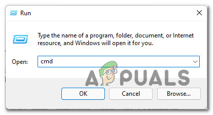 - Press Windows key + R to open up a Run dialog box. When you’re prompted by the Run text box, type ‘cmd’ and press Ctrl + Shift + Enter to open an elevated Command Prompt.