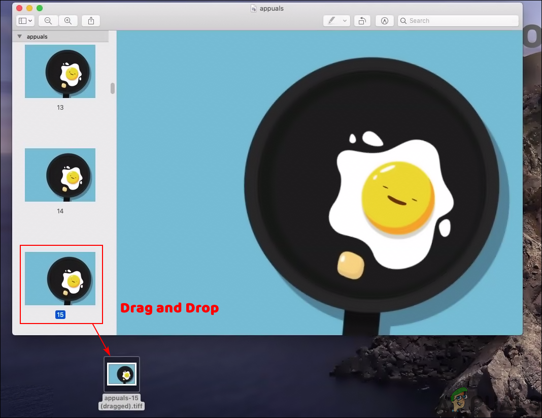 - You will get all the frames of the GIF on the left side. Click on the frame that you want as PNG and drag it to the desktop.