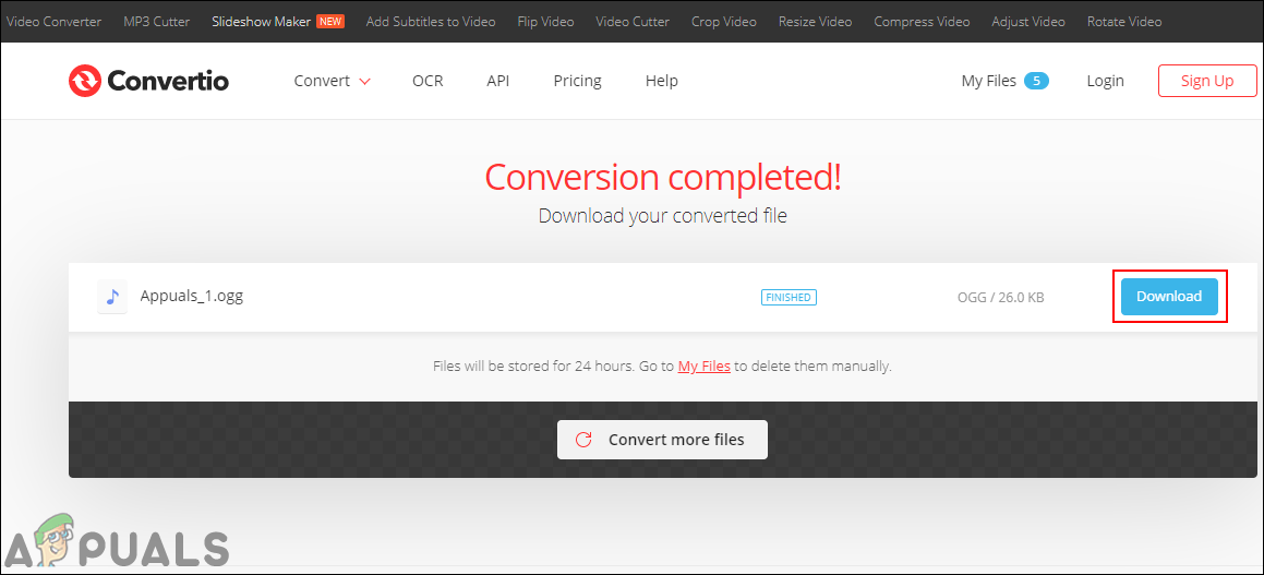 Converting MP3 to OGG - Now you can click on the Download button to download the converted OGG file to the system.