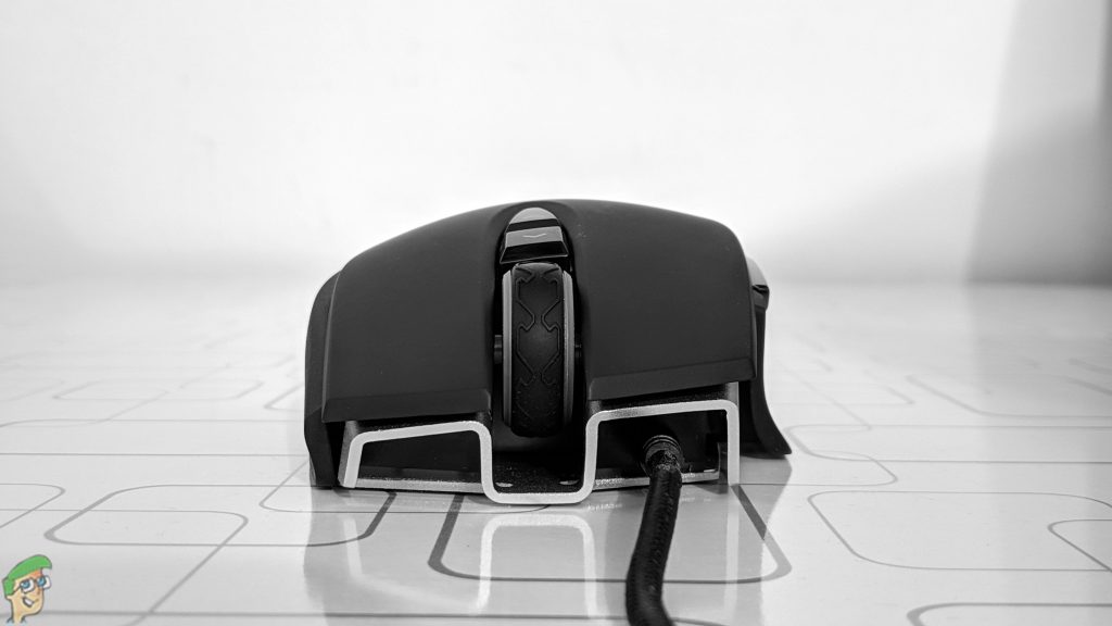 The design of the Corsair mice is always aesthetic whether that be an FPS gaming mouse or for any other gaming category. Corsair M65 RGB Elite is no exception and the mouse provides a very beautiful look overall, with multiple pieces put together to form the cover of the mouse while the frame is made of aluminium to ensure top-notch durability. The gap in the pieces at the back end feels very attractive and the RGB-lit Corsair logo and the mouse wheel enhances the looks further by a lot. The cover at the back of the mouse is higher than the rest of the pieces which is why the RGB lighting of the Corsair logo seeps from the aluminium chassis below and forms a nice aura.