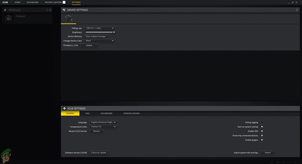 When launching the Corsair iCUE software, the first tab visible is the Home tab, where you will be able to select the profile you want the changes to adhere to. There are two profiles there by default, namely default profile and an “M65 RGB ELITE HW” profile which has an icon of memory card, representing it to be the onboard storage profile of the mouse.