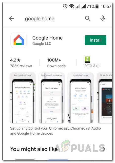 - Google Home App — One of the reasons this error message might be triggered is the Google Home app. The Google Home app is used for connecting your Chromecast to your local network and thus, if something is wrong with the app files, the functionality won’t work as intended. Therefore, in such a case, you will have to simply reinstall the Google Home app.