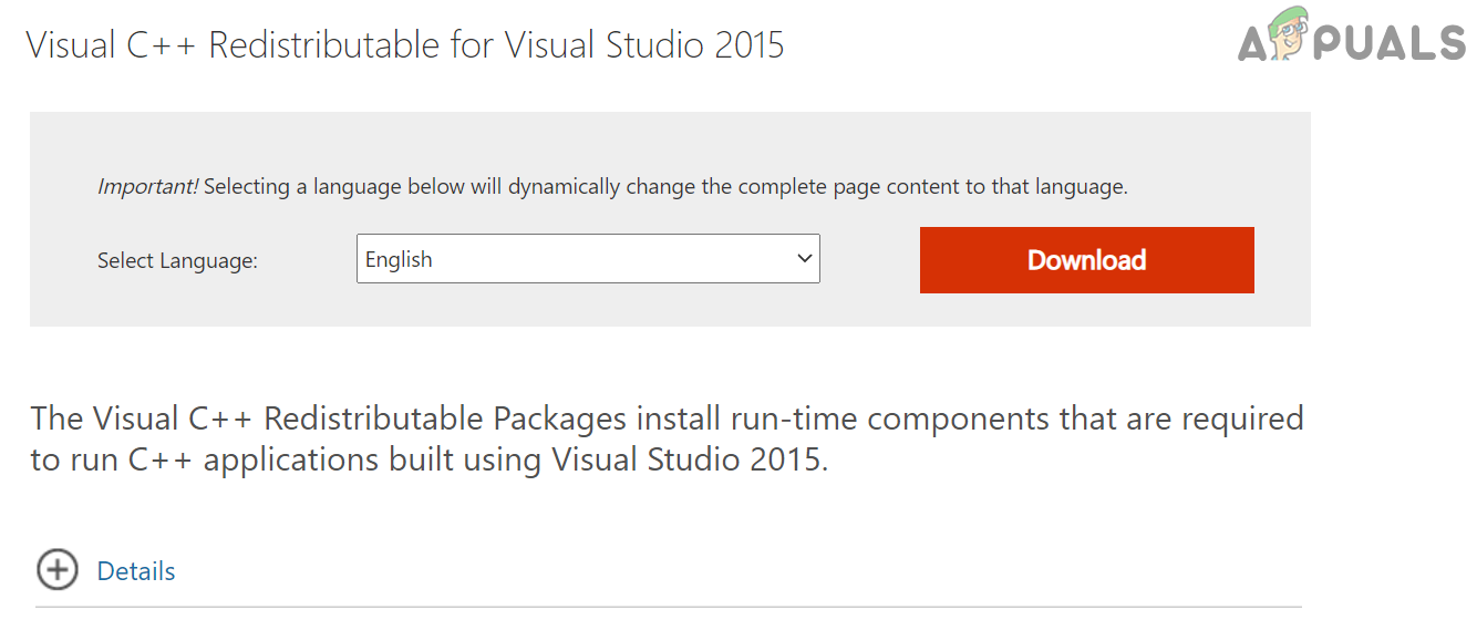 - Now click on Download and once downloaded, launch the Visual C++ installer as administrator.