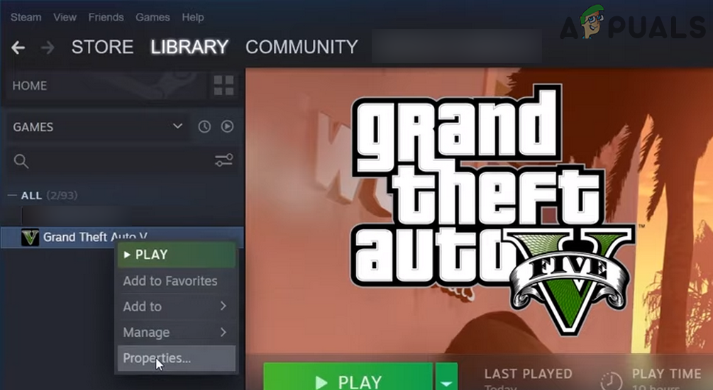 - Launch the Steam Library and right-click on GTA.