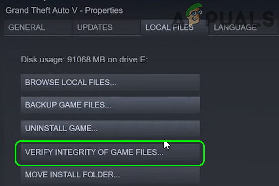 If the essential files of GTA have become corrupt, then you will encounter the issue at hand. In this case, verifying the integrity of the GTA files may solve the problem.