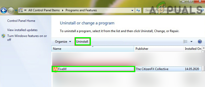 - Now expand FiveM and click on Uninstall.
