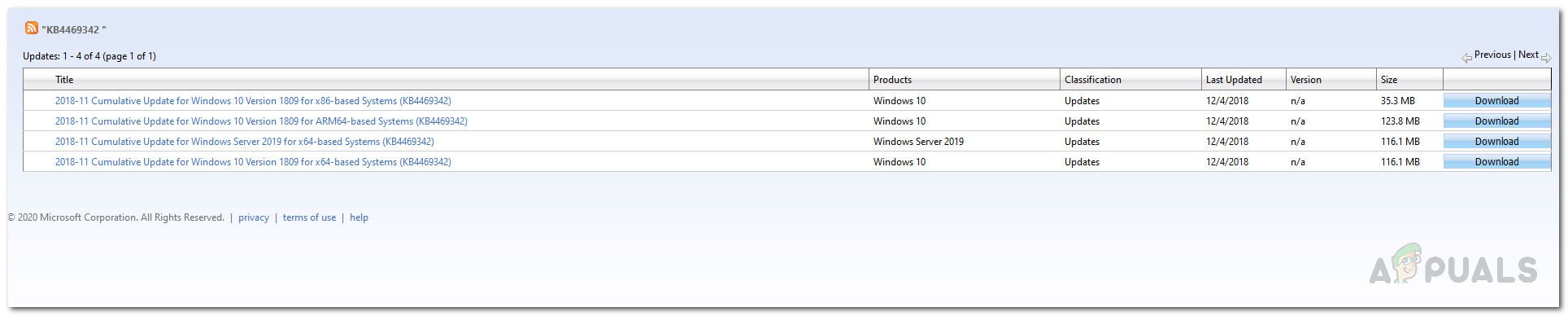 - Search for the KB4469342 update and then download the update for your system.