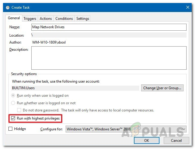 - Once you have done, check the Run with highest privileges option.