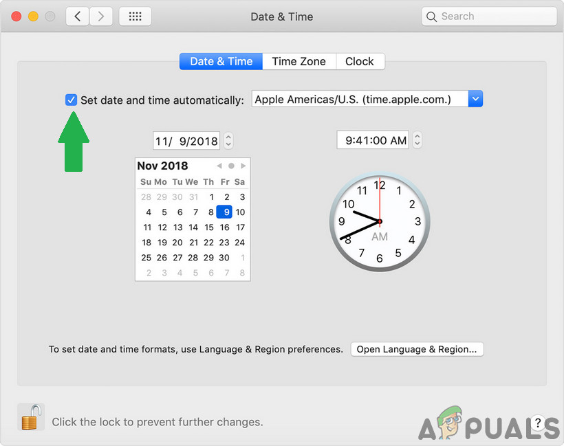 - Even if they are configured properly, uncheck the “Set Date and Time Automatically” option and then check it again.