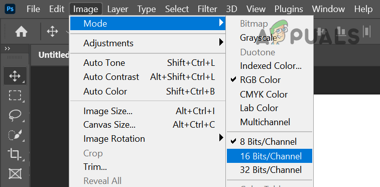 Set Image Mode to 16 Bit or 8 Bit - If that did not work, then open the problematic file in Adobe Photoshop and expand the File menu.