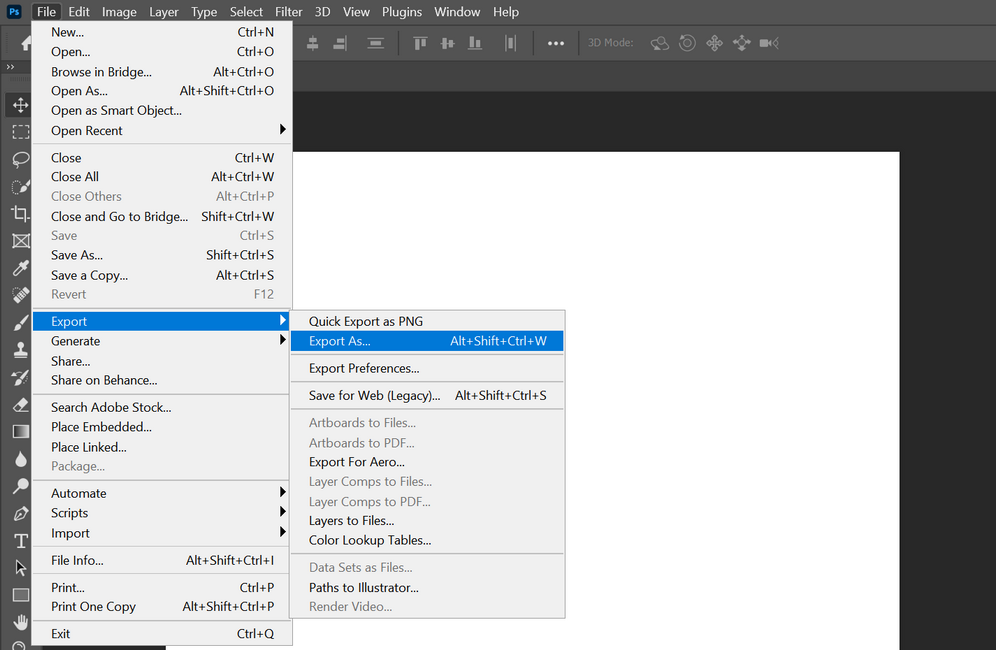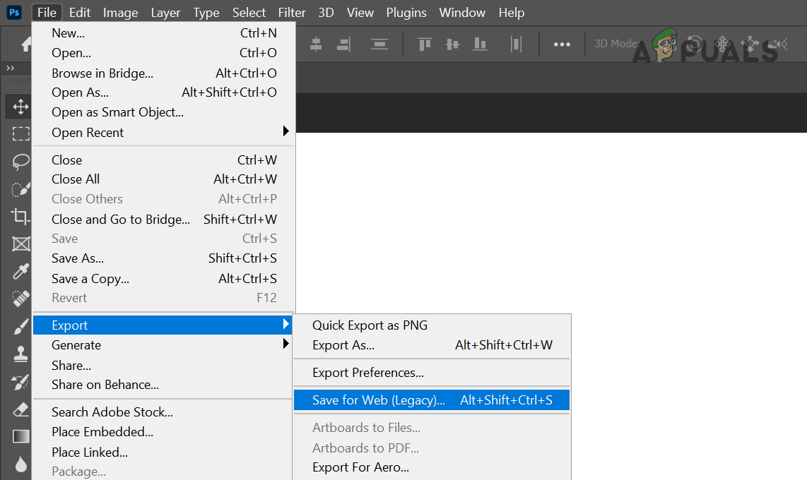 - Now hover over Export and select Save for Web (Legacy).