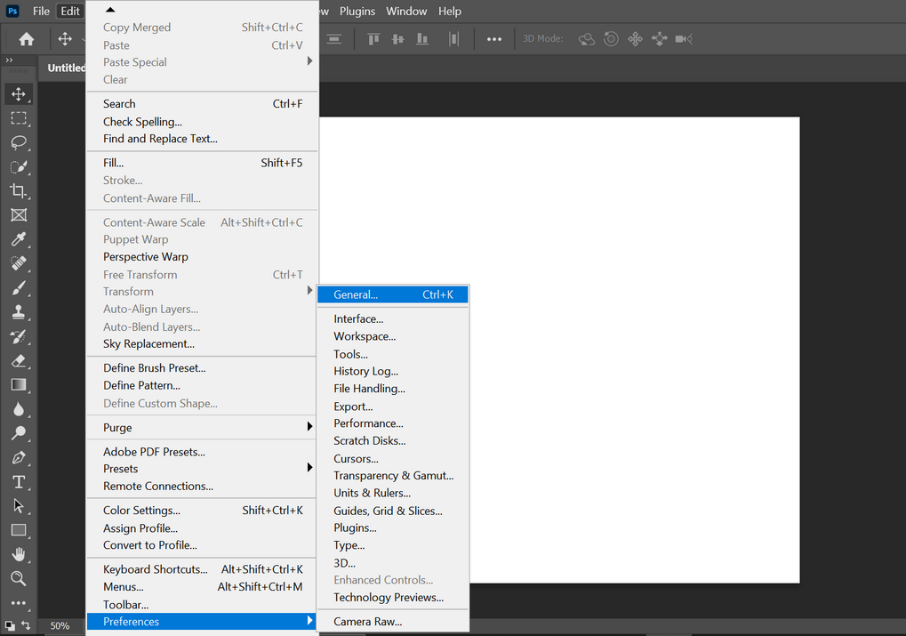 - Launch Adobe Photoshop and expand its Edit menu.