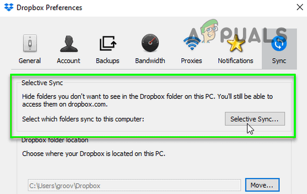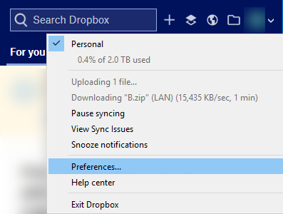 Open Dropbox Preferences - Then head to the Backups tab and click Manage Backup or you may select Selective Sync in the Sync tab.